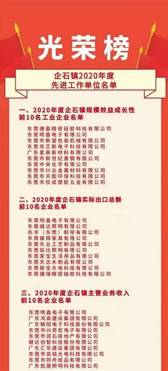 3月3日上午,企石鎮(zhèn)召開2020年度工作總結大會,發(fā)布了《企石鎮(zhèn)2020年度先進工作單位名單》,包括《2020 年度企石鎮(zhèn)規(guī)模效益成長性前10名工業(yè)企業(yè)名單》《2020 年度企石鎮(zhèn)實際出口總額前10名企業(yè)名單》《2020 年度企石鎮(zhèn)主營業(yè)務收入前10名企業(yè)名單》等10份名單。會議對2020年度企石鎮(zhèn)主營業(yè)務收入前10名企業(yè)進行了現場表彰。新望公司有幸入列:企石鎮(zhèn)2020年度規(guī)模效益成長性前10名。